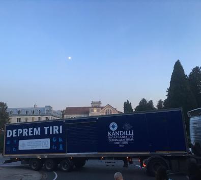 Da wirkt die Lage des Kandilli Campus fast schon allegorisch: Wie aus einem akademischen Elfenbeinturm blickt er von seinem Hügel auf den tektonischen Hexenkessel, weit weg vom Trubel der Millionenstadt. Trotzdem findet das hier generierte Wissen immer seinen Weg aus den Gebäuden und Forschungseinrichtungen des Campus‘ nach unten, zu den Bewohnerinnen und Bewohnern Istanbuls: Mir selbst wurde das Ausmaß der Bedrohung erst bewusst, als ich einen der so genannten Erdbebentrucks besucht hatte. Sie werden an öffentlichen Plätzen, Schulen und Universitäten eingesetzt, um Bewusstsein für die Erdbebengefahr zu schaffen und das richtige Verhalten im Ernstfall zu üben. Bis zu sieben Menschen können gleichzeitig nach einer kurzen Einführung Gelerntes in die Praxis umsetzen und werden gebeten, sich während des simulierten Erdbebens der Stärke 6,5 auf den Boden zu knien und Kopf und Hals mit den Händen zu schützen.