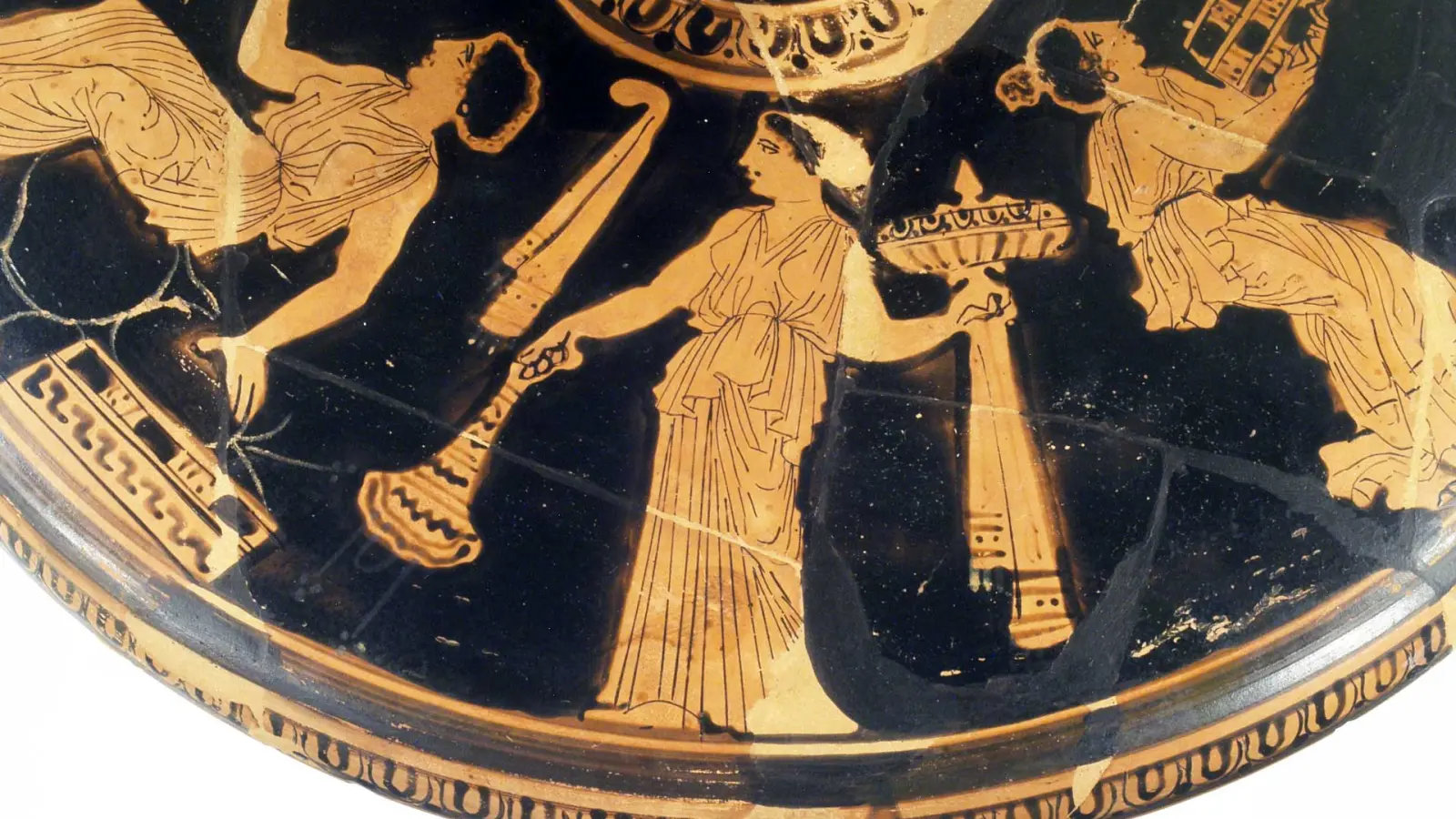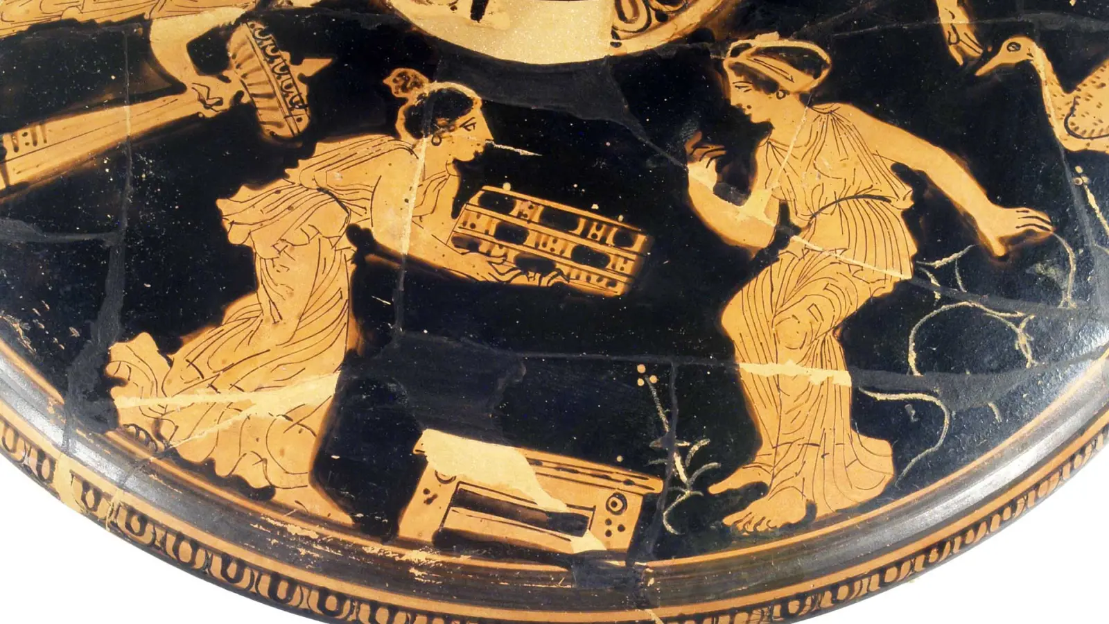 Deckel eines Tongefäßes aus Athen, ca. 410-400 v. Chr., H 7,3 cm, D ca. 23 cm, Klassisch-Archäologische Sammlungen, JGU