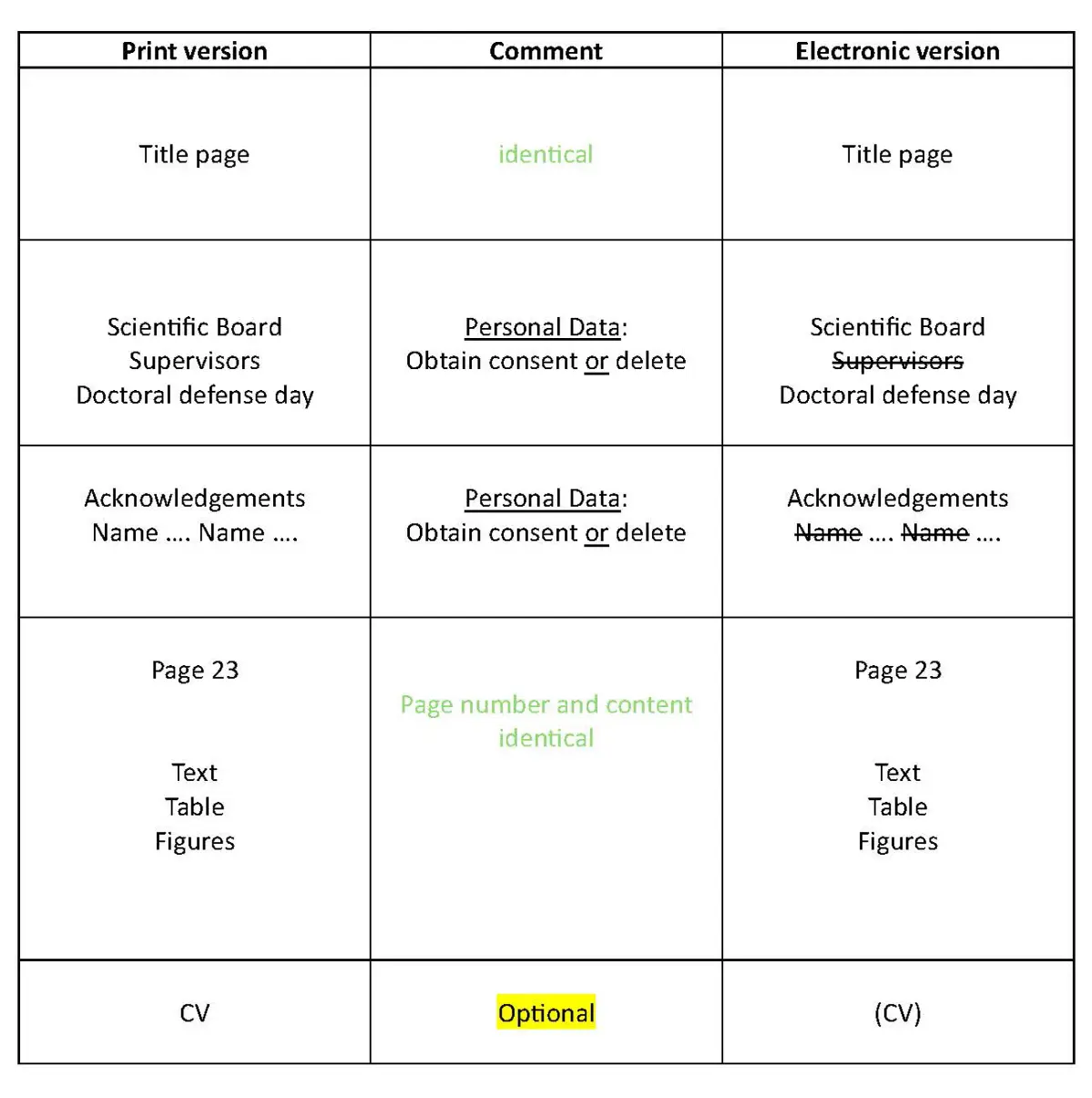 - Important: The electronic version must be identical to the print version (page count, title page, illustrations, bibliography, tables, etc.).