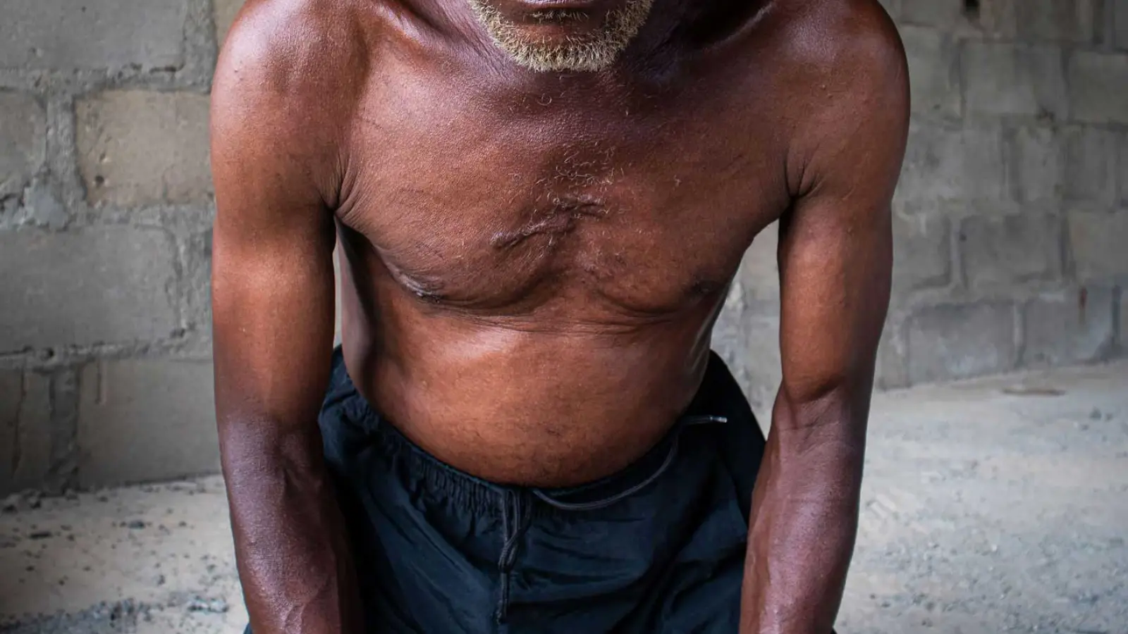 Another project that focused on scars is that of Kayode Oluwa, who portrayed boxers from Lagos. By its very nature, this profession leaves marks on the body. Oluwa wanted to show this by zooming in on typical boxing scars. His images show scars on the eyebrow and around the eye, as well as hardened skin on the knuckles, left by the practice of punching.