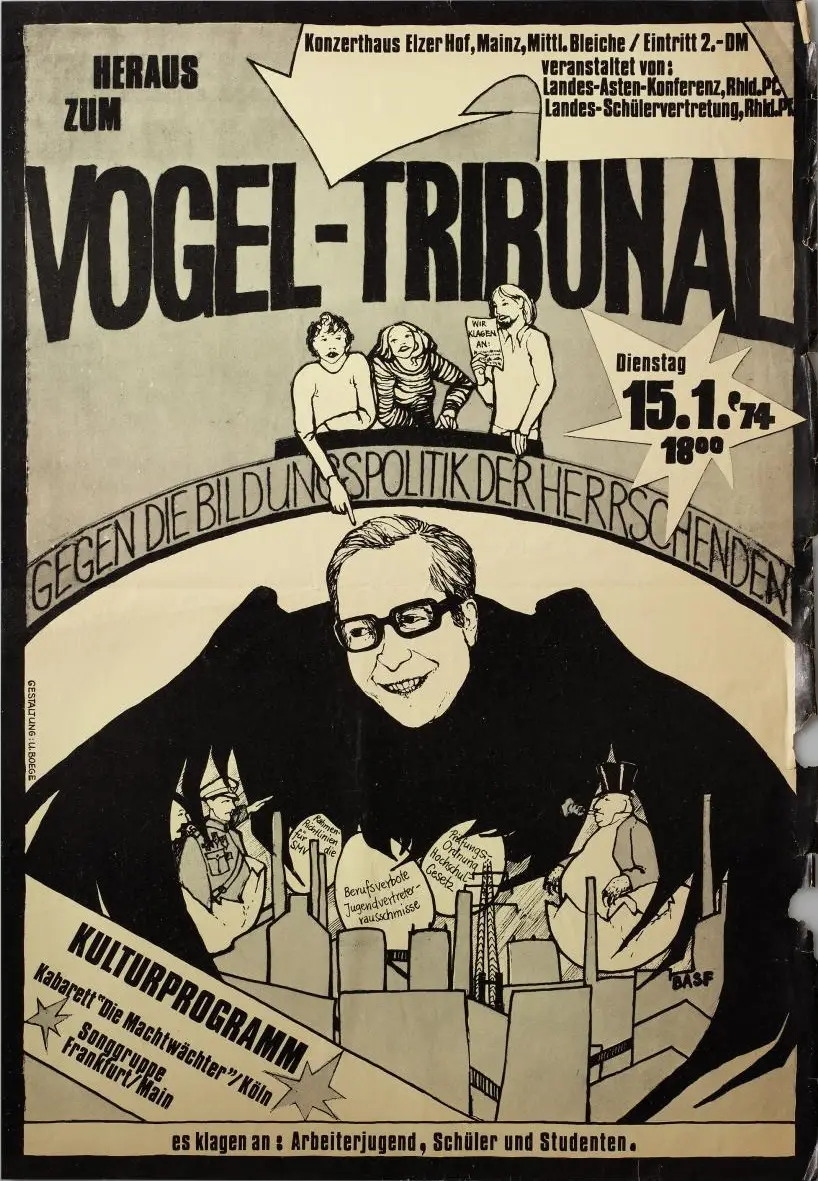 Noch lange Ziel von Protest Unter dem Motto "Vogel-Tribunal hielt ein Bündnis aus Schülern Studis und Azubis 1974 einen fiktiven Gerichtsprozess gegen Vogel ab.